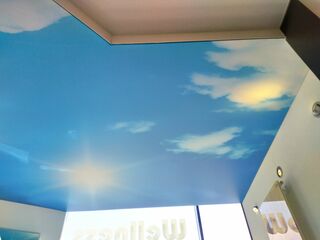 Wie wäre es mit einem leuchtend blauen Himmel statt der weißen Zimmerdecke? Holen Sie sich ein echtes Highlight ins Bad. Maßgeschneidert und bedruckt mit dem Motiv Ihrer Wahl oder in einer aus über 300 Farben. Erhältlich in Matt, Seidenglanz oder Hochglanz, wahlweise mit Schalldämmung.